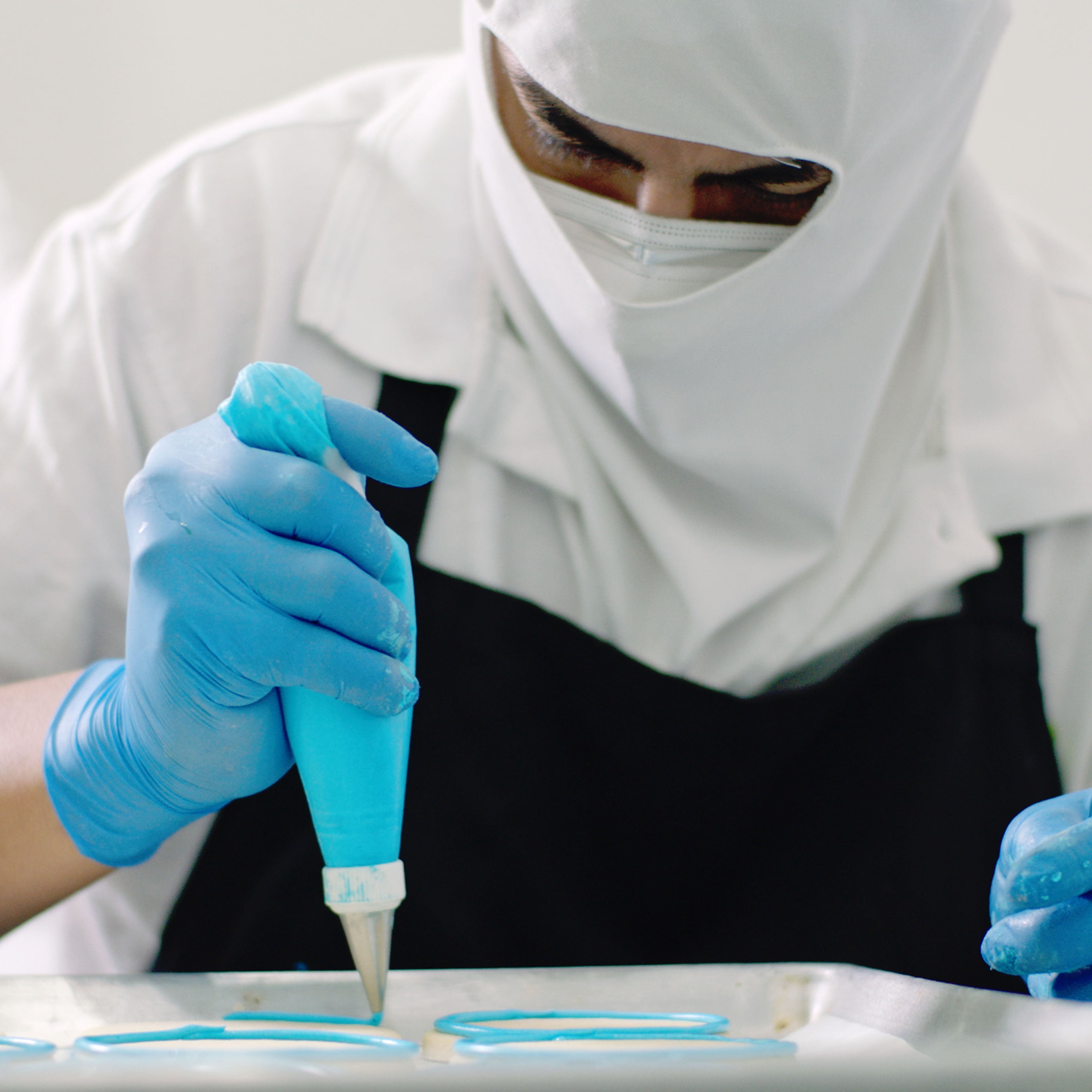 Our production facility is where magic meets efficiency. Designed to meet the highest food safety standards, it allows us to decorate and ship thousands of cookies per day — all with a human touch.